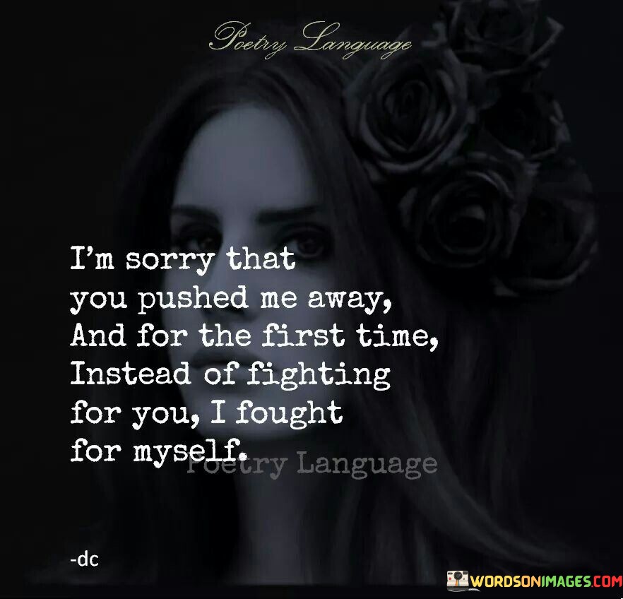 The quote reflects personal growth and self-preservation. "Pushed me away" implies distancing. "Fought for myself" signifies prioritizing well-being. The quote conveys a shift in focus from the relationship to one's own needs, illustrating the realization of self-worth.