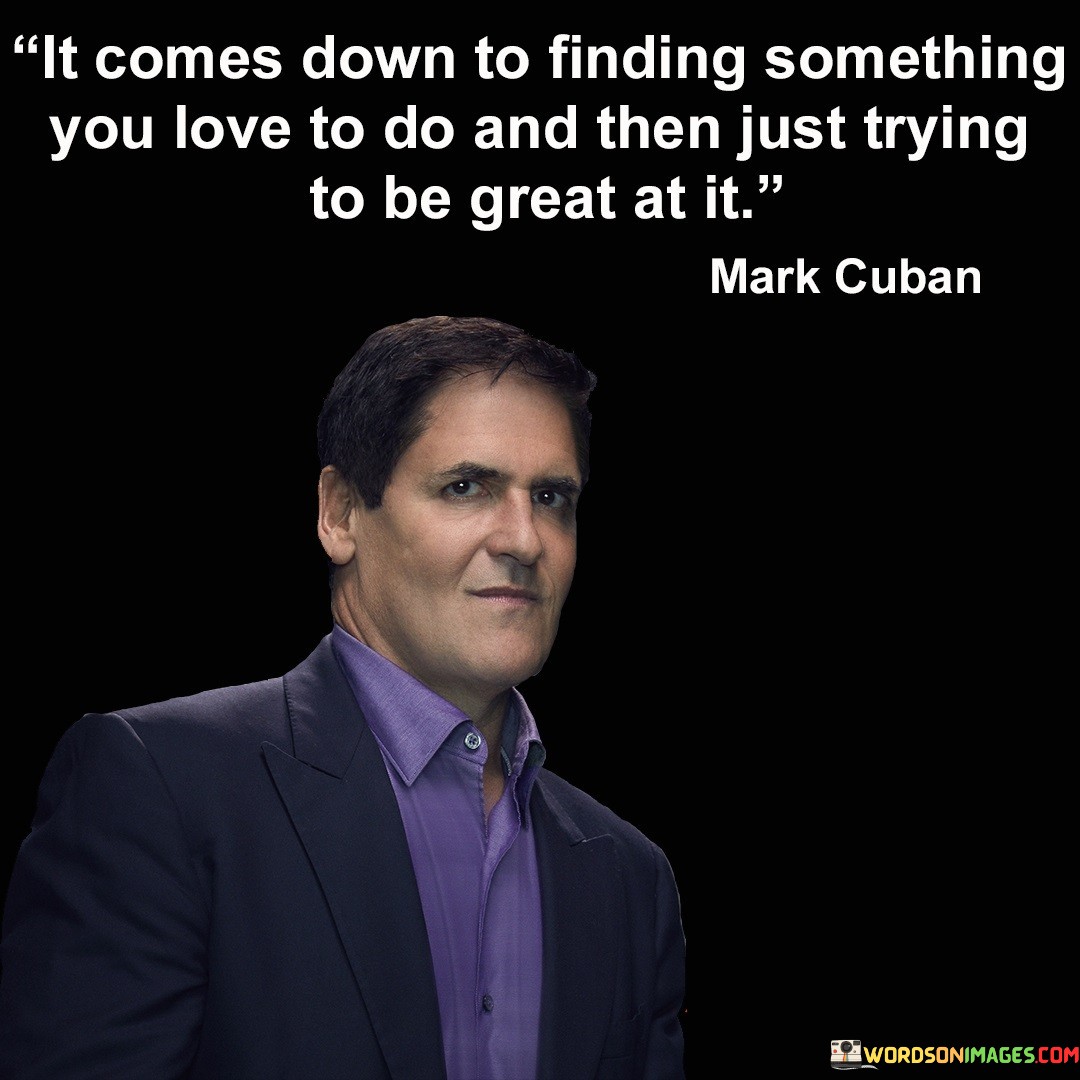 This quote emphasizes the importance of passion and dedication in achieving greatness. It suggests that the key to success lies in finding a pursuit that one loves and then striving to excel in it.