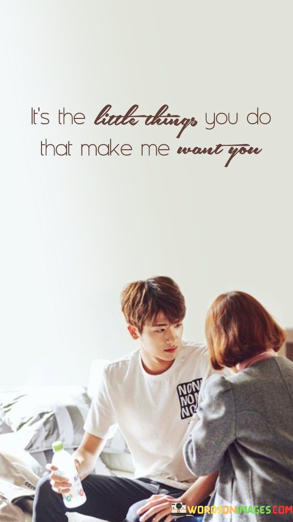 This quote celebrates the profound impact of small, thoughtful gestures in a relationship. It suggests that it's not grandiose actions or extravagant displays of affection, but the everyday, seemingly insignificant things a person does that ignite desire and love. These "little things" demonstrate attentiveness, consideration, and a deep connection that can't be measured by grand gestures alone.