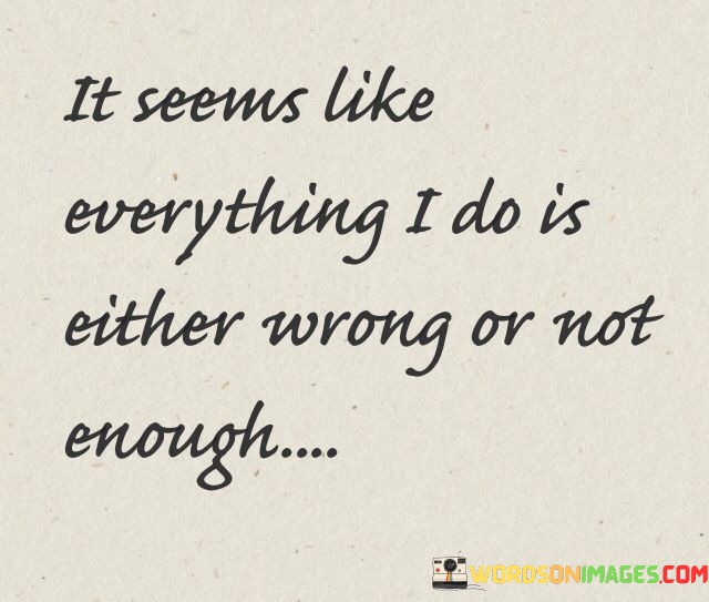 The quote reflects on feelings of inadequacy and frustration. "Everything I do is wrong or not enough" conveys a sense of failure. The quote illustrates the struggle of feeling unappreciated and undervalued, with efforts seeming to fall short of expectations.