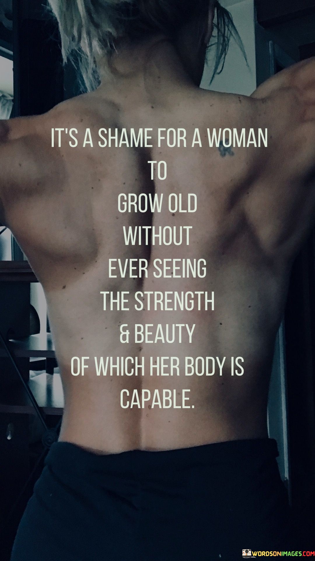 At its core, the quote highlights the importance of body positivity and self-love. It reminds women that their bodies are not objects to be judged or compared but vessels of strength and beauty that enable them to achieve remarkable feats. The phrase "grow old without ever seeing" suggests that time is precious and should not be wasted on self-doubt or dissatisfaction with one's body. Instead, it encourages women to explore and celebrate their bodies' capabilities throughout their lives, fostering a sense of empowerment and self-appreciation. Ultimately, this quote serves as a reminder for women to recognize, embrace, and cherish their bodies for all they can accomplish and represent. It encourages women to reject the limiting beliefs imposed by society and embrace a positive and empowering relationship with their bodies, fostering a sense of pride and confidence in their unique abilities and physicality as they journey through life.