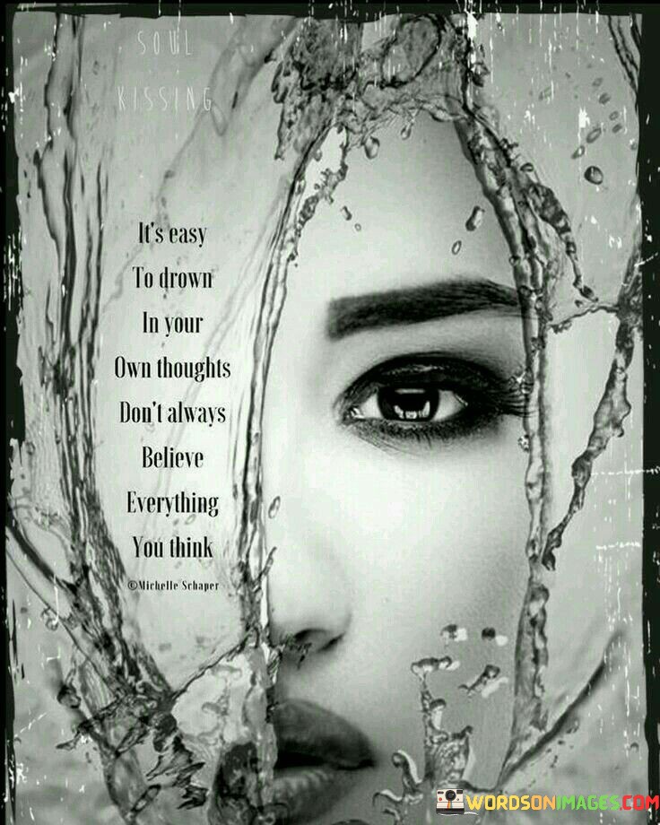 This quote addresses the potential dangers of overthinking and uncritical self-belief. In the first paragraph, it suggests that constant rumination can lead to mental overwhelm, likening it to drowning in one's thoughts. This emphasizes the need to manage our thinking patterns for better mental well-being.
