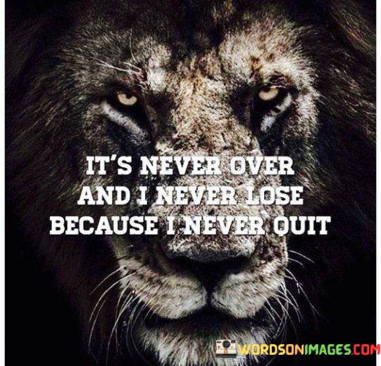 The quote underscores the importance of perseverance. It implies that the key to never losing is the refusal to quit. This perspective encourages individuals to maintain their drive and focus on their goals, regardless of obstacles or setbacks.
