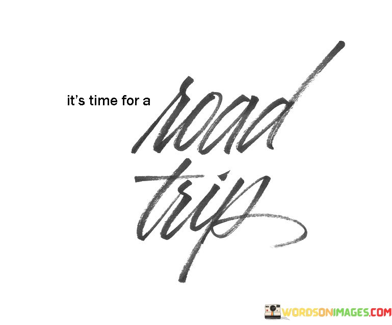 This quote embodies wanderlust and spontaneity. "It's Time" suggests seizing the moment. "For A Road Trip" invokes adventure and exploration, inviting one to embark on a journey, seek new horizons, and create memories while embracing the open road.