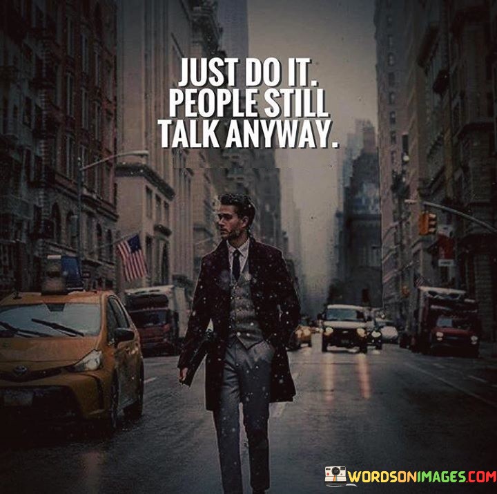 This quote is about the importance of taking action and not worrying too much about what other people think. No matter what you do, people will always talk, so it's best to just focus on doing what you think is right.