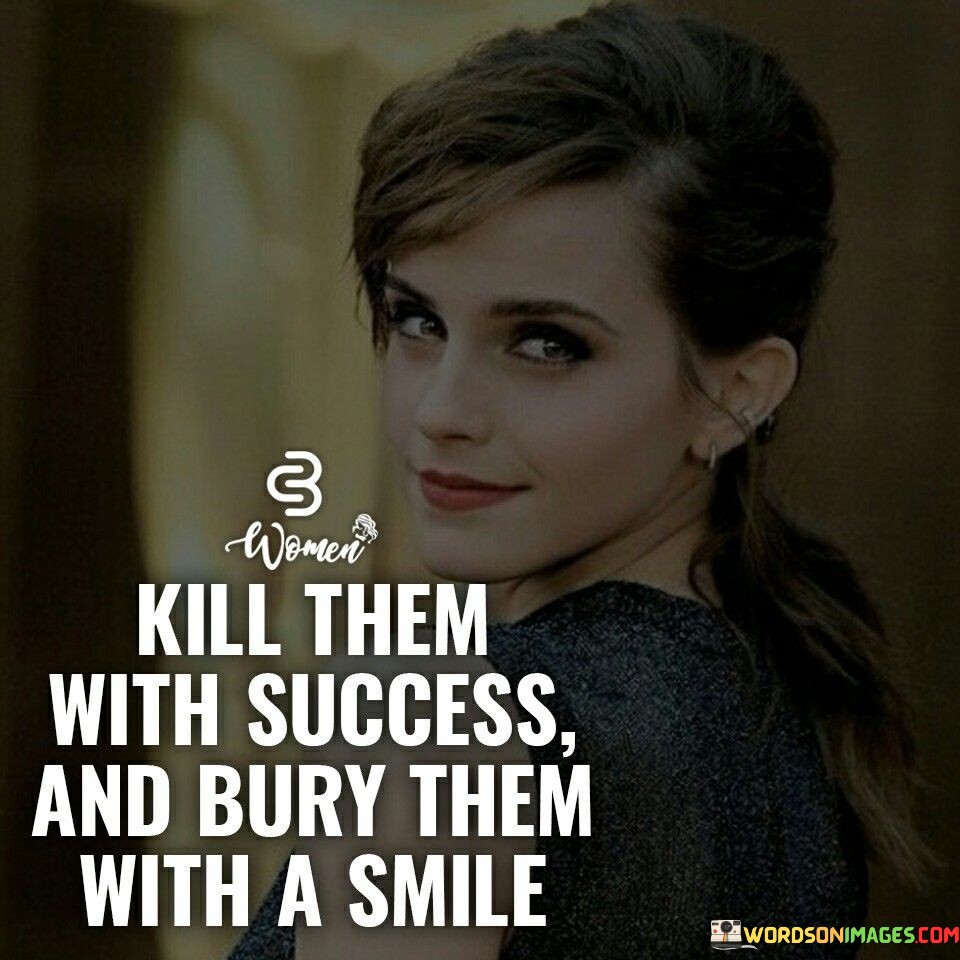 In essence, the quote encourages individuals to use their achievements and positive demeanor as a response to criticism. It highlights the effectiveness of focusing on self-improvement and maintaining a confident and optimistic attitude in the face of challenges.