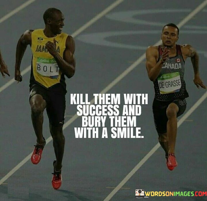"Kill them with success and bury them with a smile." This statement conveys a powerful message about achieving success and maintaining a positive attitude in the face of detractors.