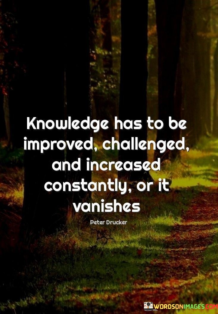 This quote emphasizes the dynamic and perishable nature of knowledge. In the first paragraph, it stresses the importance of improvement, suggesting that knowledge should not remain static but must evolve with time and new insights. This implies that one's understanding should be refined through critical thinking and continuous learning from various sources.
