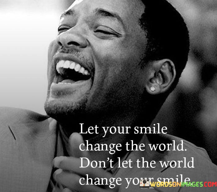 In essence, the quote promotes the idea that our actions, particularly our smiles, can influence the world for the better, and it encourages individuals to maintain their own happiness despite the challenges they may encounter.