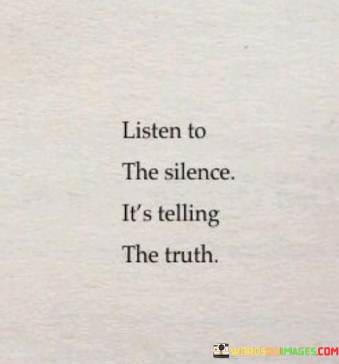 The quote underscores the concept of introspection. It conveys that by actively listening to moments of silence, individuals can access their innermost feelings and thoughts. This perspective encourages self-awareness and understanding of one's own truth.