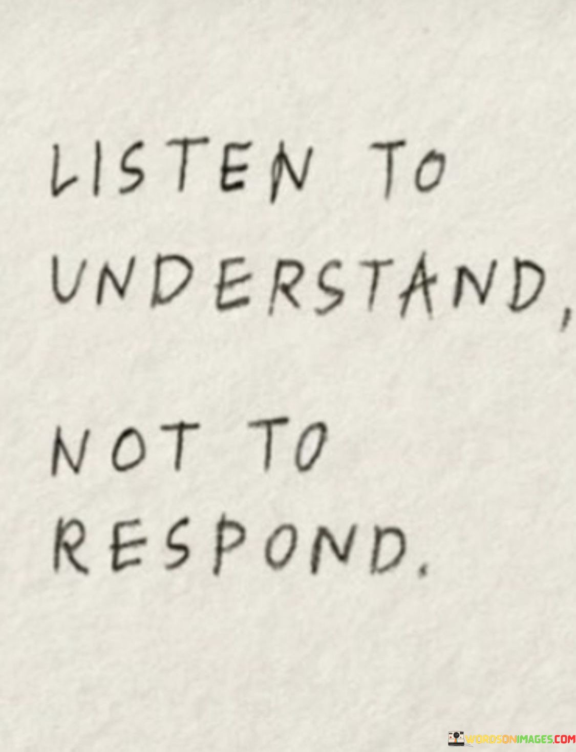 This quote emphasizes active listening. "Listen to understand" suggests empathy. "Not to respond" highlights patience. It encourages individuals to focus on comprehending others' perspectives rather than rushing to offer their own input, promoting more meaningful conversations and fostering deeper connections through genuine understanding.