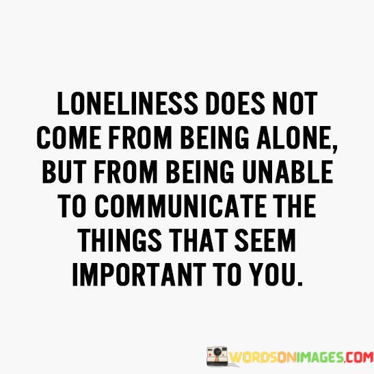 The quote "loneliness does not come from being unable to communicate the things that seem important to you" challenges a common perception of loneliness. It suggests that isolation isn't solely a result of communication barriers. Instead, it implies that deeper emotional connections play a significant role in combating loneliness.