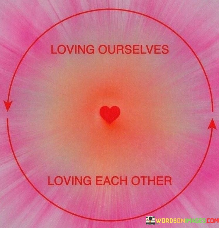 Ultimately, the quote promotes a harmonious approach to relationships. It signifies that when individuals cultivate self-love, they are better equipped to form meaningful and enriching connections with others, fostering an environment of mutual care, understanding, and love.