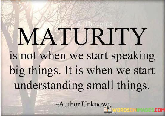 Imagine a person who talks about big ideas but doesn't pay attention to the small, everyday moments. Maturity, according to this quote, is when we shift our focus and start noticing and valuing the small things that often go unnoticed.