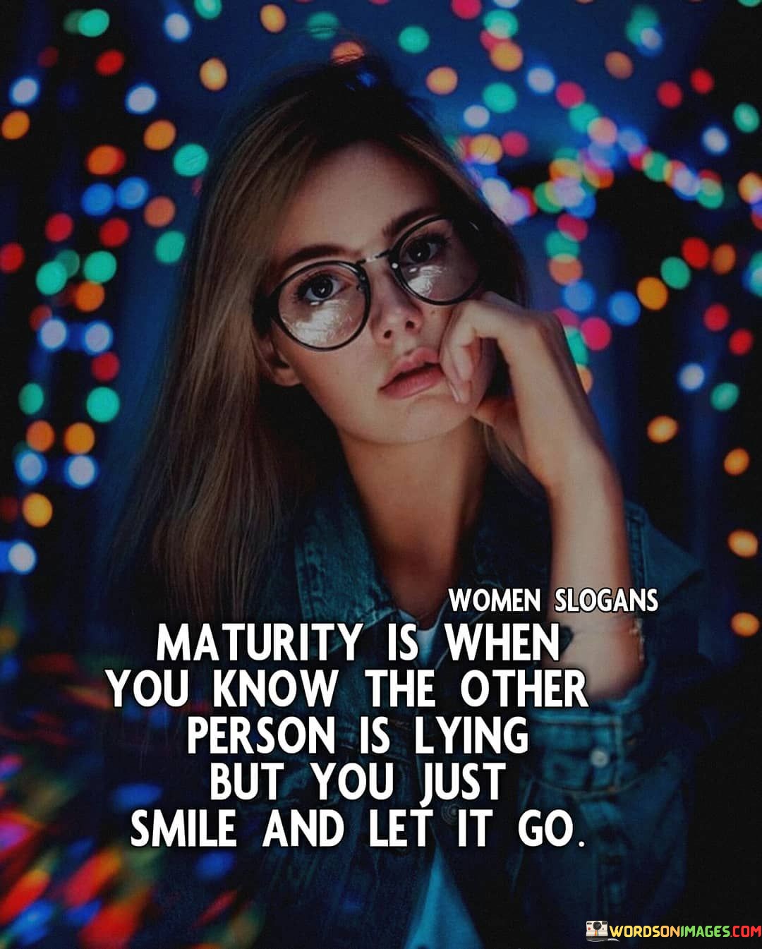 The quote conveys a sense of emotional maturity and restraint. "Maturity" signifies emotional growth and wisdom. "Know the other person is lying" implies awareness of deception. "Just smile and let it go" reflects the ability to choose peace over confrontation.