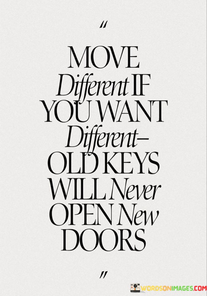 This quote is saying that if you want to achieve different results in your life, you need to change the way you approach things. If you keep doing the same things you've always done, you'll keep getting the same results.