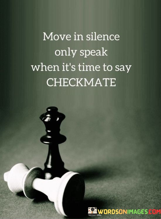 Putting it all together, this quote is telling us to be smart about when we talk and when we stay quiet. Sometimes, it's good to keep our plans secret and not let others know what we're up to. But when the right time comes, we should speak up and use our words wisely, just like making the final winning move in a game of chess. So, it's a reminder to be strategic and thoughtful in our actions and words.