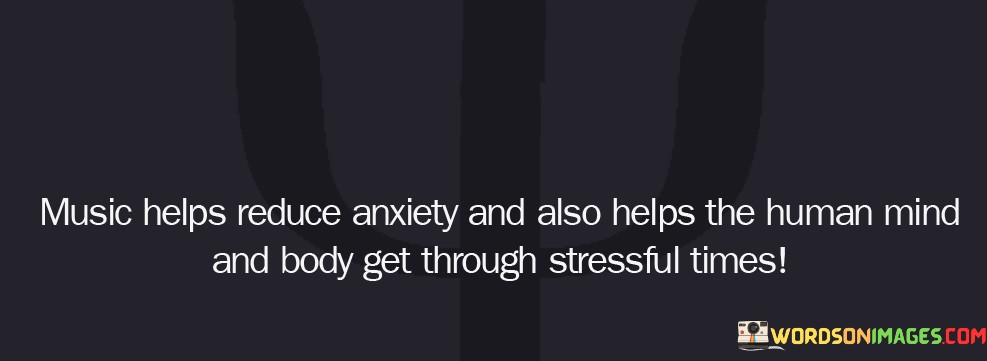 This quote emphasizes the therapeutic power of music in alleviating anxiety and aiding in coping with stress. Music has been recognized for its ability to soothe the mind and body, offering a sense of comfort and emotional release during challenging moments.