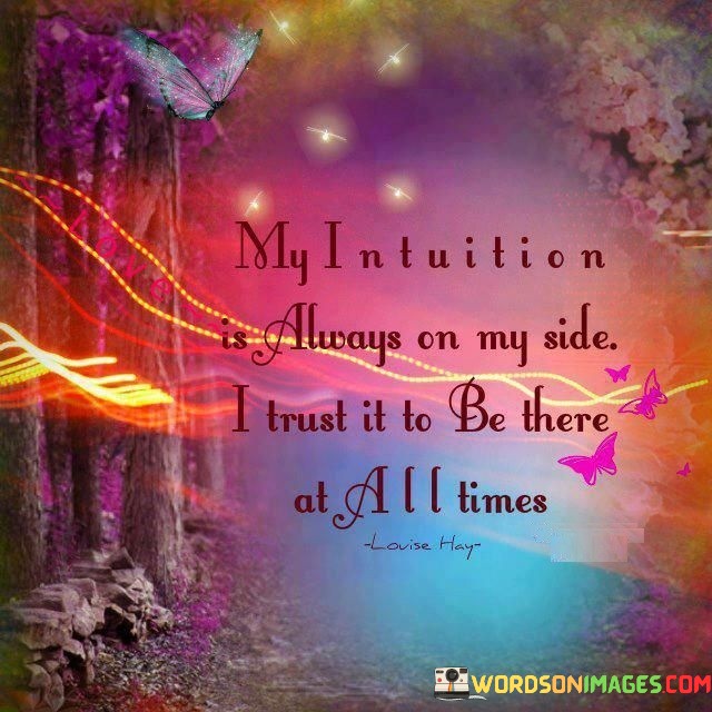 The second part, "I trust it to be there at all times," conveys an unwavering belief in the reliability of intuition. It implies an inherent connection with this inner compass.