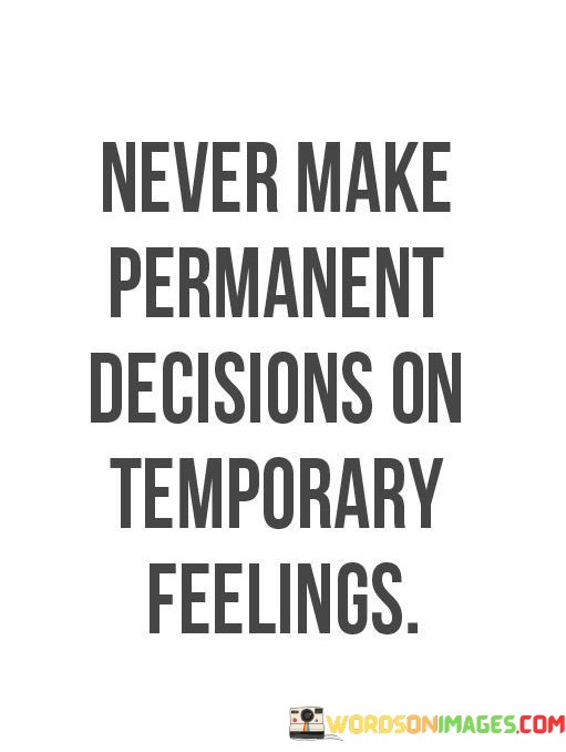 The quote "Never make permanent decisions on temporary feelings" serves as a valuable piece of advice, cautioning against the potential consequences of acting impulsively based on fleeting emotions.