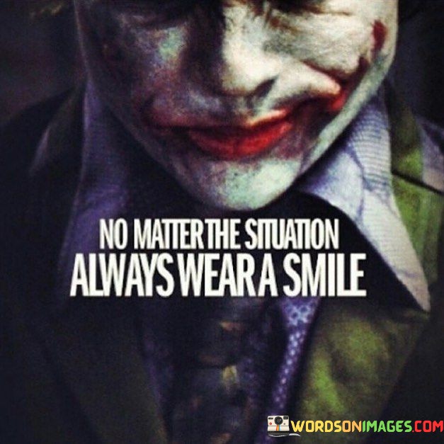 This quote underscores the value of maintaining a positive outlook regardless of circumstances. It suggests that wearing a smile is a choice that transcends challenges, symbolizing resilience and a hopeful spirit.