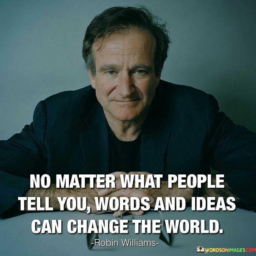 "No matter what people tell you, words and ideas can change the world." This inspiring quote, attributed to Robin Williams, emphasizes the profound impact that words and ideas can have on the world and the people in it.