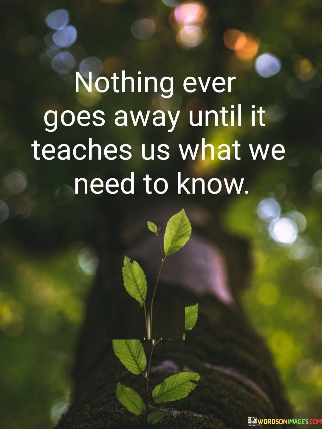 The statement "Nothing Ever Goes Away Until It Teaches Us What We Need To Know" highlights the idea that challenges and experiences persist until we derive meaningful lessons from them. It suggests that difficulties continue to recur until we gain the insights necessary for growth and understanding.