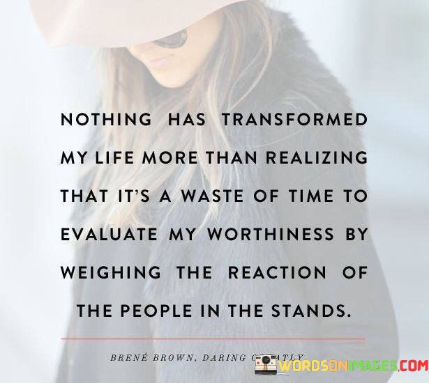 This insightful statement highlights a profound shift in perspective. It signifies the transformation that occurs when one stops seeking validation from others and recognizes their inherent worth.