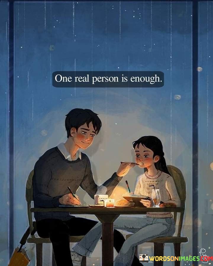 In the first paragraph, "One Real Person" emphasizes the importance of authenticity and genuineness in relationships. It suggests that having just one person who is true and sincere is significant.