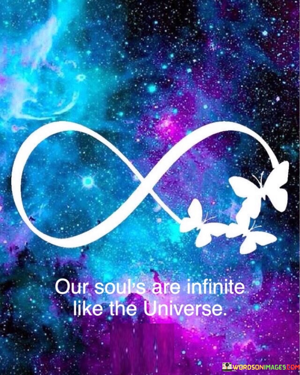 This quote draws a parallel between the vastness and boundlessness of the human soul and the universe. It suggests that, like the universe, our souls are limitless and expansive in their potential and capacity.