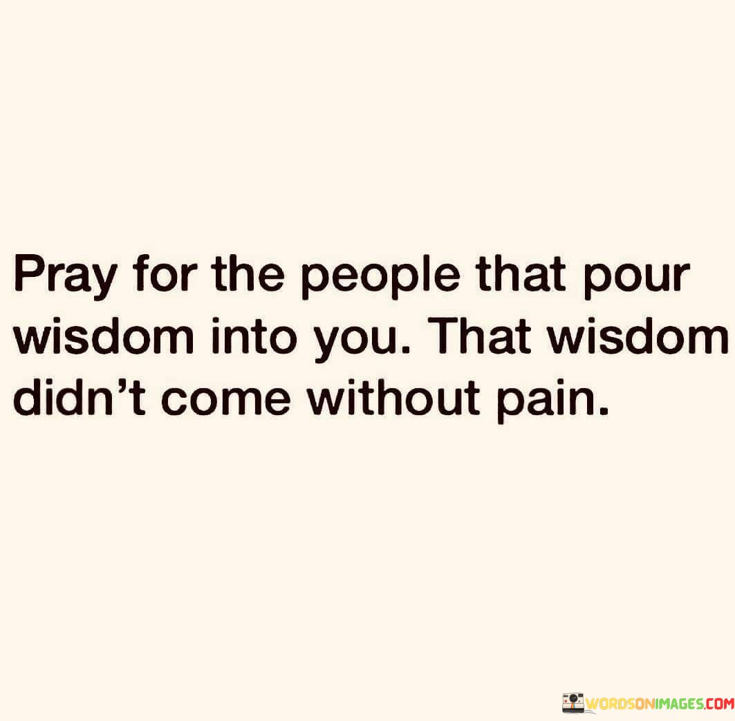 The quote suggests acknowledging the effort and experiences of those who share wisdom. It implies that wisdom is often gained through personal struggles and challenges. This perspective underscores the importance of empathy and gratitude for those who contribute to one's growth.