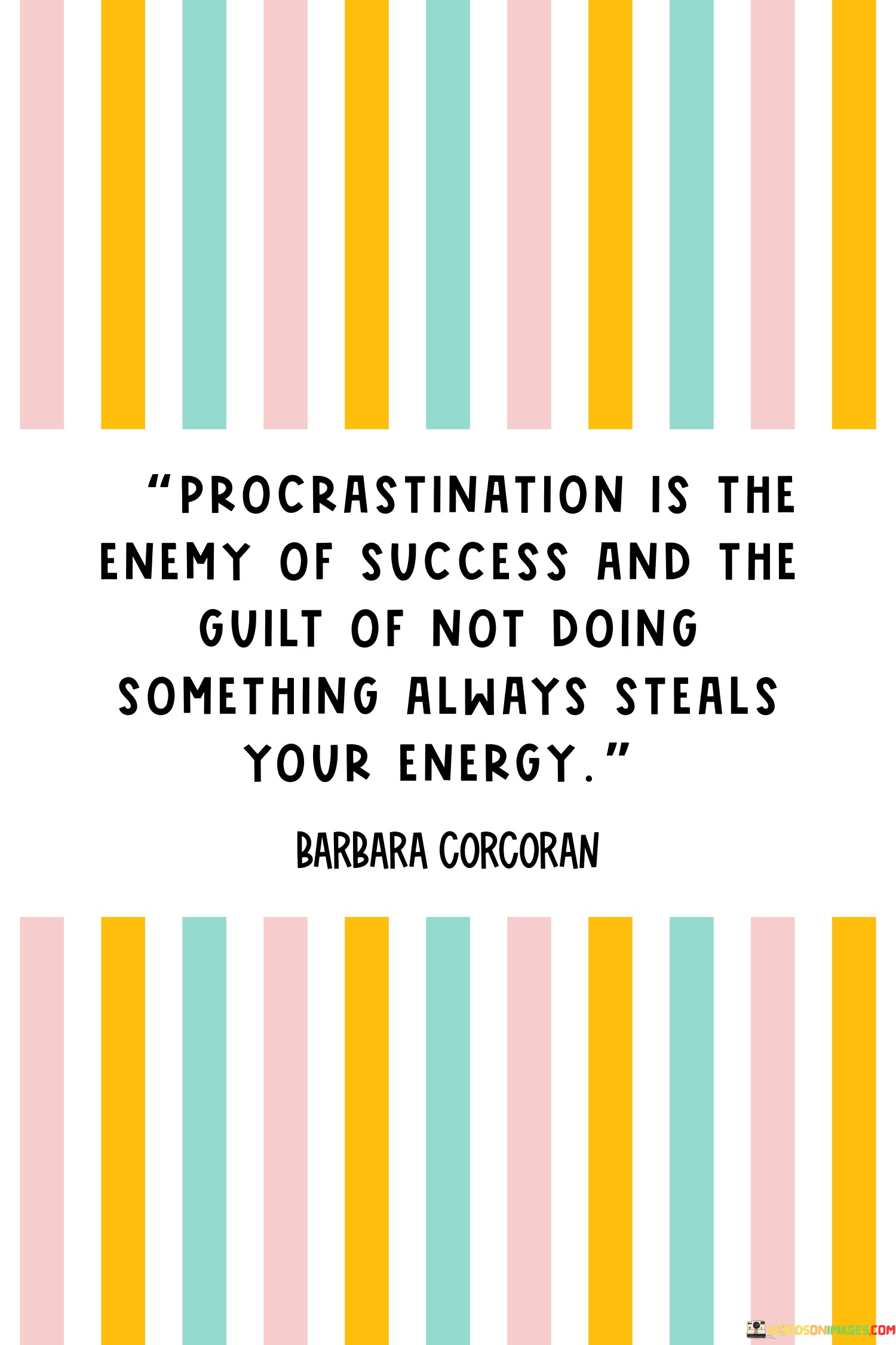 The second paragraph underscores the emotional toll of procrastination. It implies that the guilt arising from neglecting responsibilities drains one's energy, creating a cycle of unproductivity and diminishing motivation.