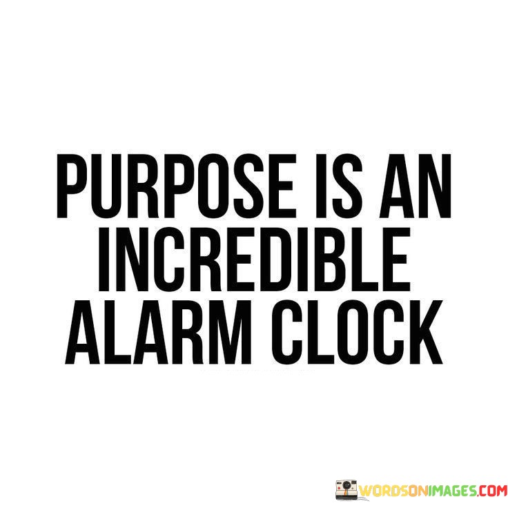 Purpose acts as a powerful motivator. This quote likens purpose to an alarm clock, indicating its ability to wake us from a state of inertia. Like an alarm, purpose jolts us into action, urging us to pursue our goals with renewed energy and determination.
