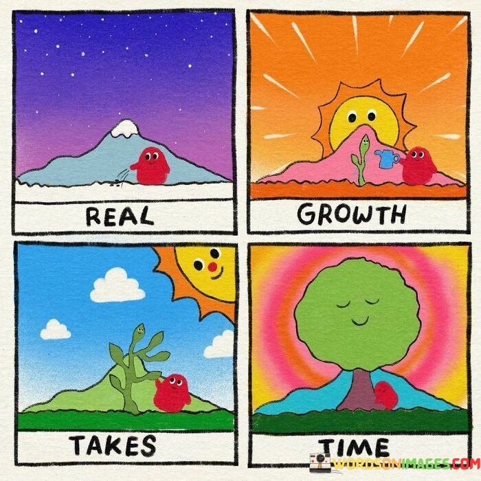 "Takes time": This part emphasizes that such growth is a gradual process that doesn't happen overnight.