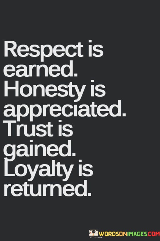 In this quote, the importance of three fundamental virtues - respect, honesty, and trust - is beautifully encapsulated. Respect, the first pillar, is not automatically granted but must be earned through one's actions and demeanor. It highlights the idea that treating others with respect is a precursor to receiving it in return.