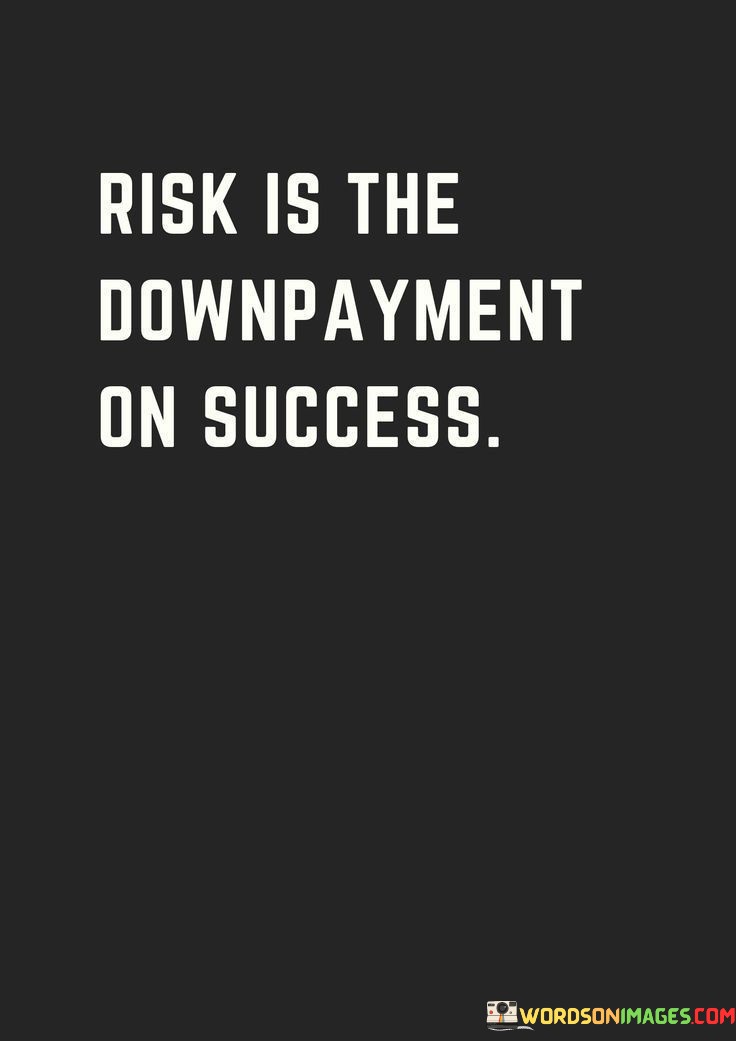 The statement "Risk Is The Downpayment On Success" encapsulates the notion that taking calculated risks is an essential investment in achieving significant accomplishments. In this context, the first paragraph underscores that success often requires stepping outside one's comfort zone, embracing uncertainty, and facing challenges head-on.