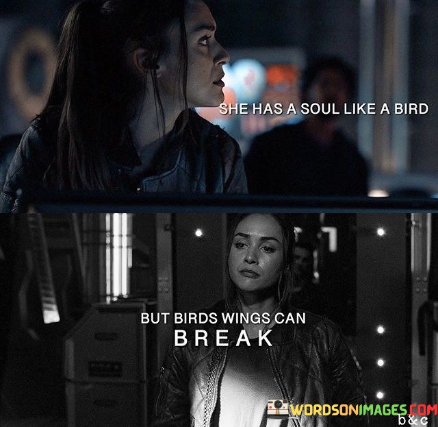 Overall, the quote speaks to the duality of the human experience—where strength and fragility coexist. It celebrates the beauty and freedom of a woman's soul, her capacity for adventure, and her desire to embrace life's opportunities. Yet, it also acknowledges that, like any living being, she is not immune to vulnerability and the potential for hardships. This juxtaposition emphasizes the importance of cherishing our resilience while also recognizing the need for care, support, and compassion during difficult times. Ultimately, the quote serves as a poetic reflection on the complexity of the human spirit and the importance of finding a balance between embracing life's adventures and nurturing our emotional well-being.