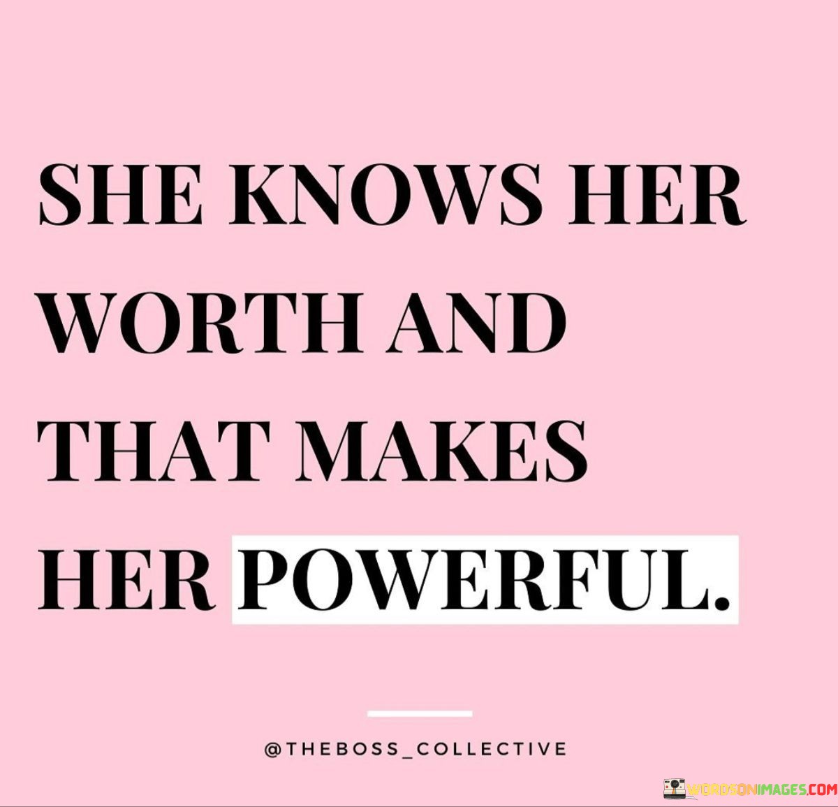 The quote continues with "And That Makes Her Powerful," indicating that her self-assuredness and knowledge of her worth grant her a sense of personal power and agency. This power doesn't stem from external factors but from her internal understanding of her worthiness and capabilities.