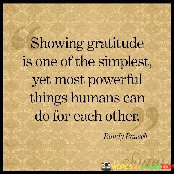 "Showing Gratitude, Even for the Simplest and Most Powerful Things, Is One of the Most Profound Things Humans Can Do for Each Other" encapsulates the idea that gratitude enhances relationships by acknowledging and valuing the efforts of others. It implies that expressing thanks creates a meaningful connection. The phrase underscores the importance of cultivating an attitude of appreciation.