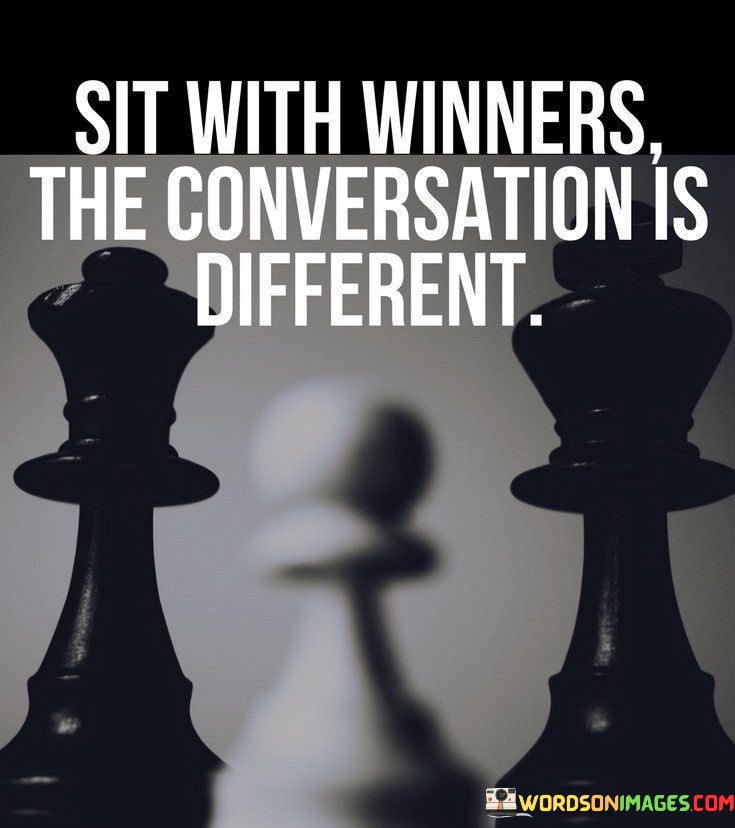 This quote emphasizes the impact of surrounding yourself with successful and positive individuals. When you sit and engage in conversations with winners—people who have achieved their goals and have a growth-oriented mindset—the nature of the discussion changes. These individuals often discuss opportunities, growth, and success, which can be inspiring and motivating.