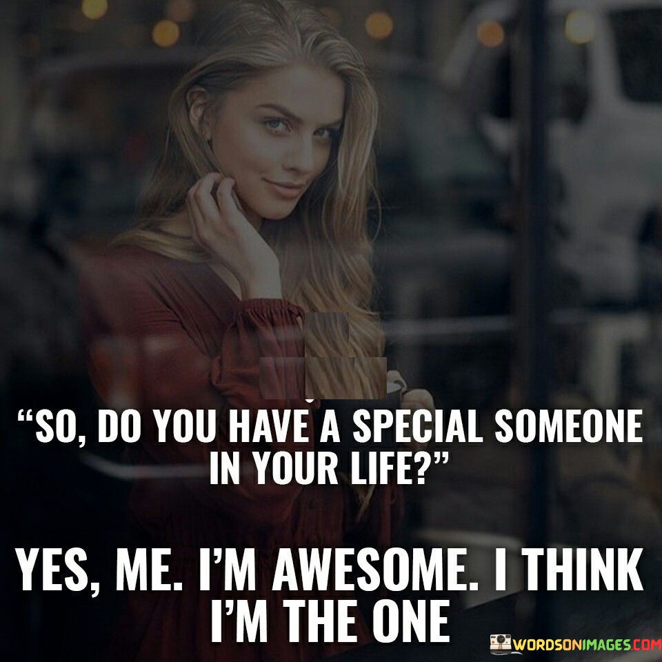 The quote plays with the idea of self-love and companionship. The phrase "so do you have a special someone in your life" suggests the question pertains to romantic relationships.