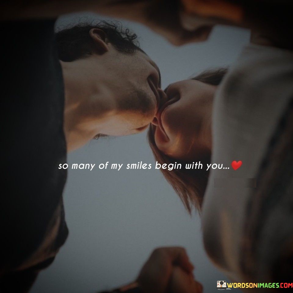 "So many of my smiles begin with you." This quote beautifully captures the significant role that a loved one plays in bringing joy and happiness to the speaker's life.