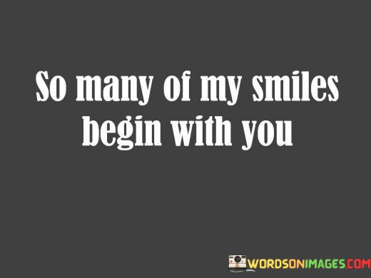 The quote captures the joy of companionship. "So many of my smiles begin with you" suggests that the presence of the person being referred to brings about countless moments of happiness and smiles.