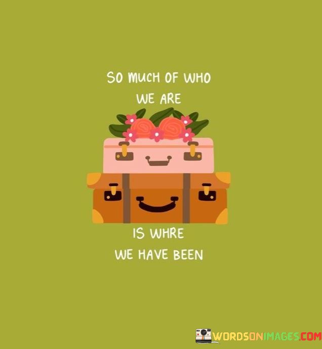 In essence, the quote highlights the profound connection between our life's journey and our personal identity. It suggests that the people we've met, the cultures we've encountered, and the moments we've lived all play a crucial role in shaping our individuality. "So much of who we are is where we have been" serves as a poignant reminder of the transformative power of travel and experiences, encouraging us to embrace the impact that our journeys have on our understanding of ourselves and the world around us.