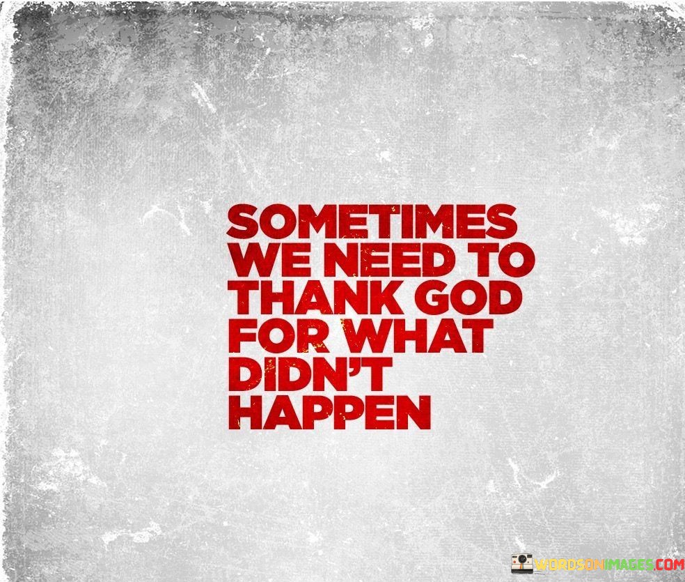 This quote carries a profound message about gratitude and the role of divine providence in our lives. In the first 60-word paragraph, it suggests that there are moments when we should express gratitude to God not just for what has happened but also for what didn't happen. It implies that sometimes, what appears as a disappointment or a missed opportunity may actually be a blessing in disguise.