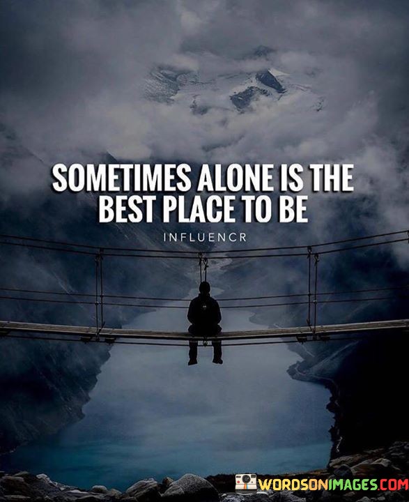 The quote highlights the value of solitude. "Alone is the best place to be" suggests a preference for solitude. It conveys the idea that being by oneself can offer solace and benefits beyond the company of others.