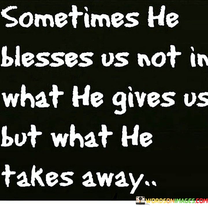 This quote emphasizes that blessings from a higher power, often referred to as God, are not solely about what is given but also about what is taken away. It suggests that God's actions, which may involve the removal of certain things from our lives, can be blessings in disguise.