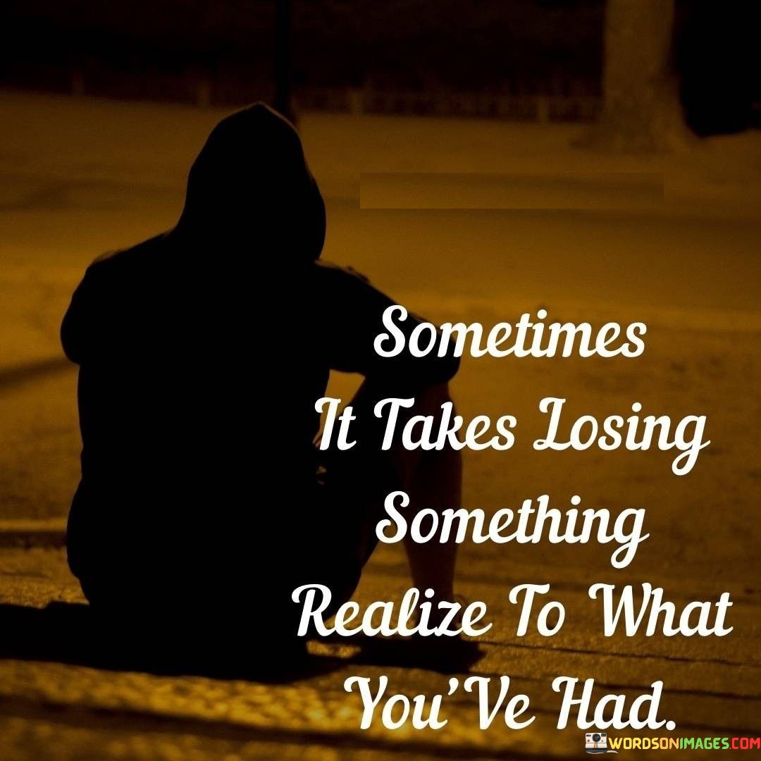 Sometimes It Takes Losing Something Realize To What You've Had Quotes