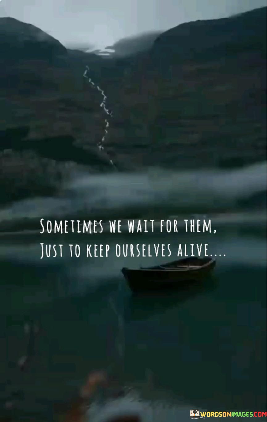 The quote, "Sometimes We Wait For Them Just To Keep Ourselves Alive," hints at the idea that waiting for a person or something significant can serve as a lifeline. It touches on the role that hope and anticipation play in maintaining one's emotional well-being.