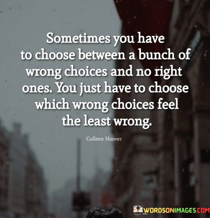 "Sometimes you have to choose between a bunch of wrong choices" acknowledges that in certain circumstances, the available choices may all have negative consequences or not align with one's desires or values.